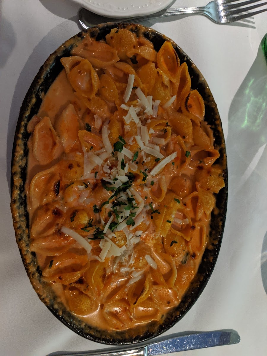 Came here with my boyfriend's family and really enjoyed the experience! This is an upscale fancy Italian dinner spot that really hit the spot. Great with a lot of Italian classics, and very cute and traditional vibe. Also with a great window view. We had a wonderful time here, waitstaff very attentive, food delicious. Hard to get a table here though, had to call when they opened since we had not made reservations beforehand. When I chcked later for a different occasion, you have to make a deposit and if you cancel, you must pay, so a slight inconvenience if plans change last minute. However, would definitely recommend this place to go to with family for an upscale dinner. Would recommend their pastas! Big plus is that they have their own parking lot!
